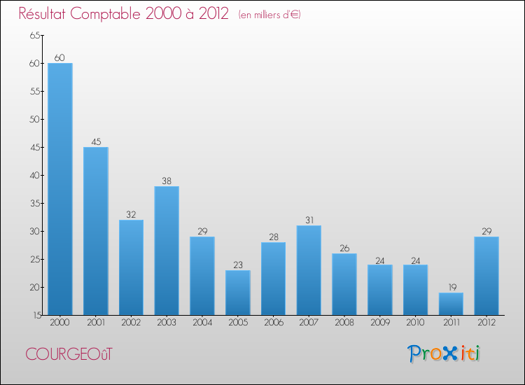 Le résultat comptable de la commune de Courgeoût s'établissait ainsi à : + 29 000 € fin 2012.