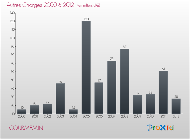 En 2012, les charges de fonctionnement de la commune de Courmemin étaient de : 352 000 € décomposées comme suit :
