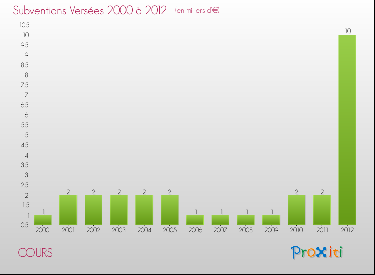 Le résultat comptable de la commune de Cours s'établissait ainsi à : + 63 000 € fin 2012.