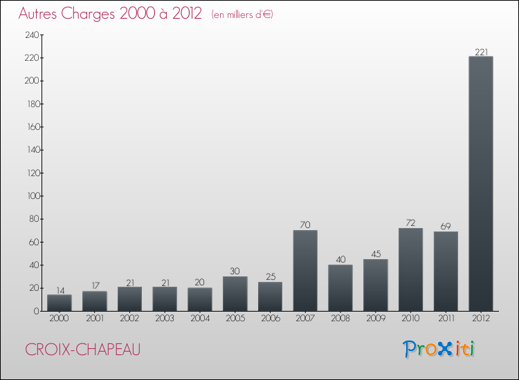 En 2012, les charges de fonctionnement de la commune de Croix-Chapeau étaient de : 711 000 € décomposées comme suit :