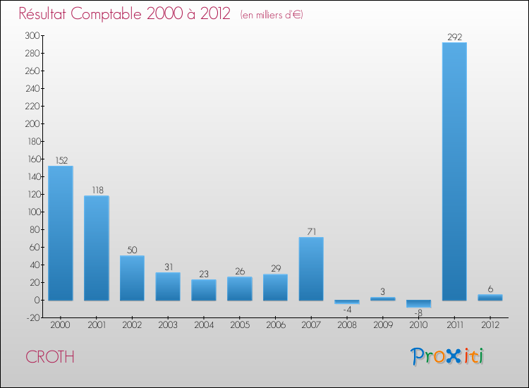 Le résultat comptable de la commune de Croth s'établissait ainsi à : + 6 000 € fin 2012.