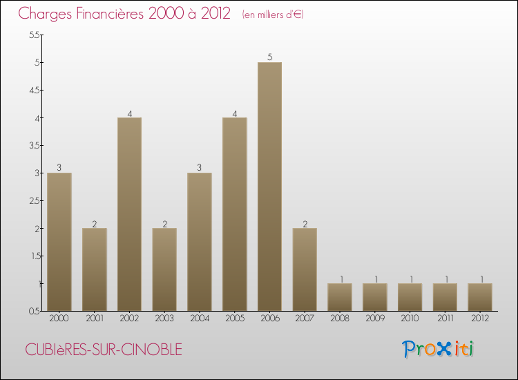 Le résultat comptable de la commune de Cubières-sur-Cinoble s'établissait ainsi à : -5 000 € fin 2012 (recettes-dépenses).