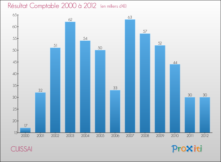 Le résultat comptable de la commune de Cuissai s'établissait ainsi à : + 30 000 € fin 2012.