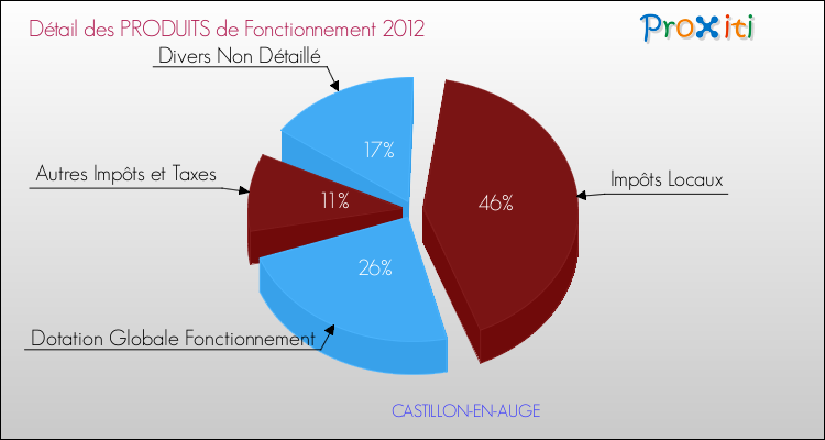 En 2012, le budget de fonctionnement de la commune de Castillon-en-Auge se montait à : 82 000 € décomposé comme suit :