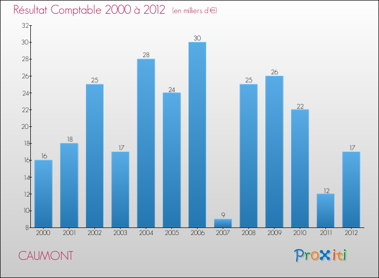 Le résultat comptable de la commune de Caumont s'établissait ainsi à : + 17 000 € fin 2012.