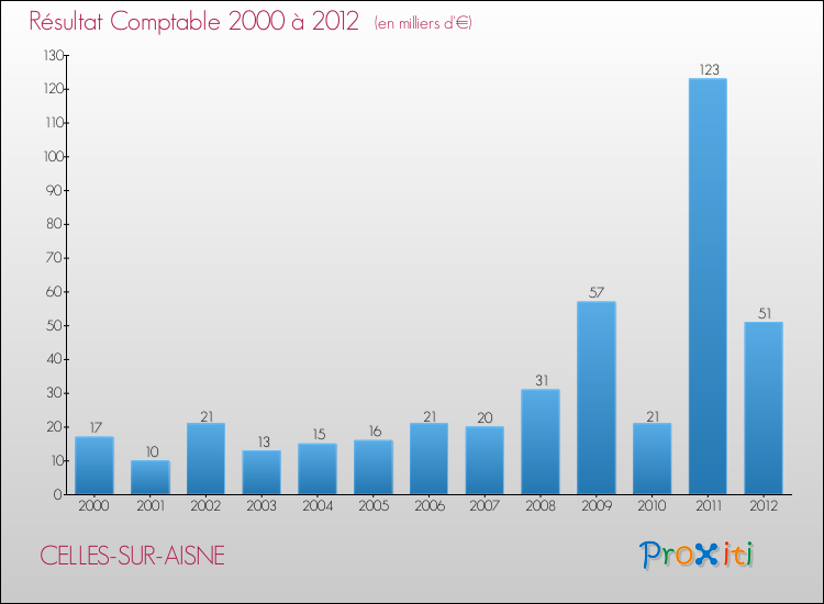 Le résultat comptable de la commune de Celles-sur-Aisne s'établissait ainsi à : + 51 000 € fin 2012.
