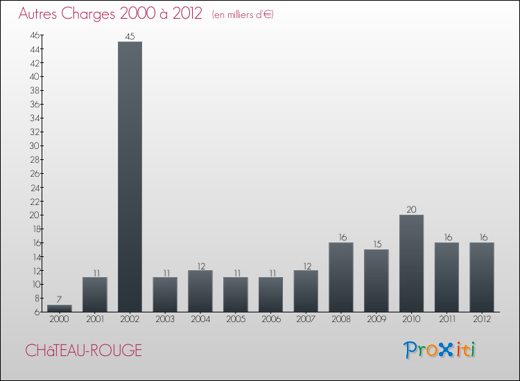 En 2012, les charges de fonctionnement de la commune de Château-Rouge étaient de : 75 000 € décomposées comme suit :