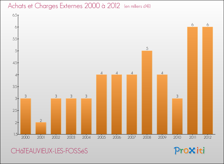 En 2012, les charges de fonctionnement de la commune de Châteauvieux-les-Fossés étaient de : 13 000 € décomposées comme suit :