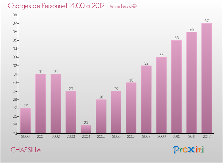 En 2012, les charges de fonctionnement de la commune de Chassillé étaient de : 189 000 € décomposées comme suit :