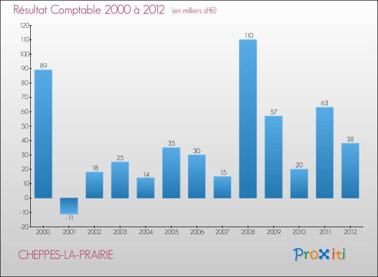 Le résultat comptable de la commune de Cheppes-la-Prairie s'établissait ainsi à : + 38 000 € fin 2012.