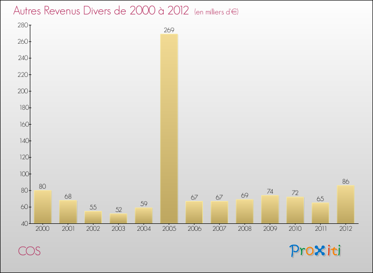 En 2012, les charges de fonctionnement de la commune de Cos étaient de : 184 000 € décomposées comme suit :