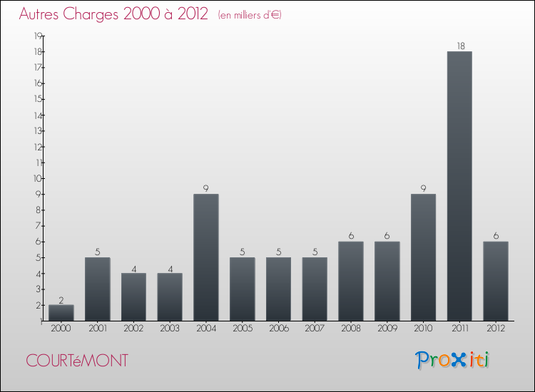 En 2012, les charges de fonctionnement de la commune de Courtémont étaient de : 28 000 € décomposées comme suit :