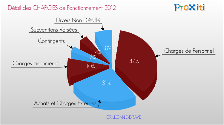 En 2012, les charges de fonctionnement de la commune de Crillon-le-Brave étaient de : 251 000 € décomposées comme suit :