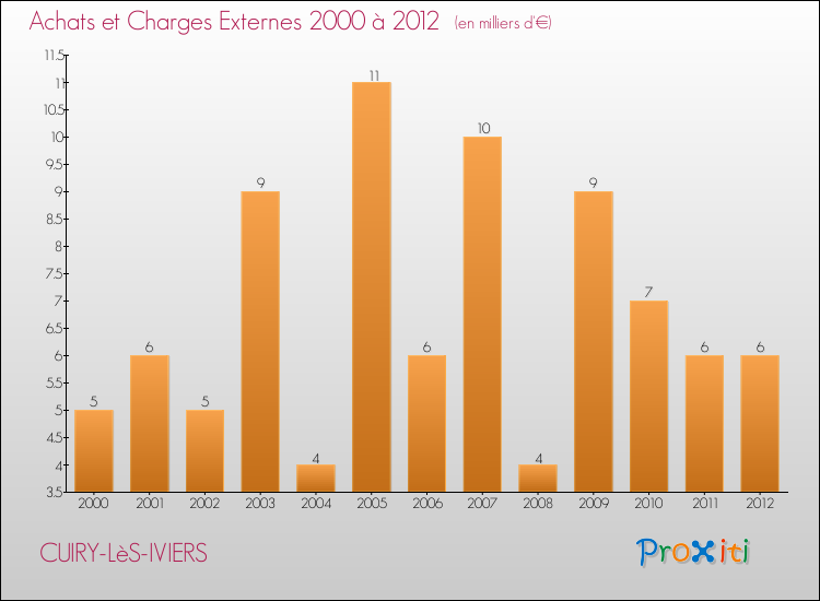 En 2012, les charges de fonctionnement de la commune de Cuiry-lès-Iviers étaient de : 24 000 € décomposées comme suit :