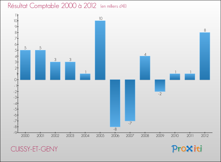 Le résultat comptable de la commune de Cuissy-et-Geny s'établissait ainsi à : + 8 000 € fin 2012.