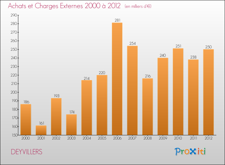 En 2012, le budget de fonctionnement de la commune de Deyvillers se montait à : 1 035 000 € décomposé comme suit :