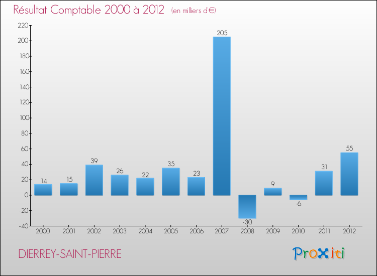 Le résultat comptable de la commune de Dierrey-Saint-Pierre s'établissait ainsi à : + 55 000 € fin 2012.