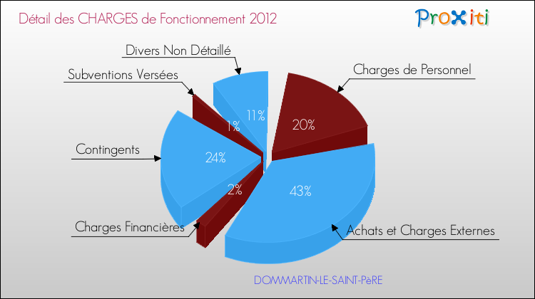 En 2012, les charges de fonctionnement de la commune de Dommartin-le-Saint-Père étaient de : 150 000 € décomposées comme suit :