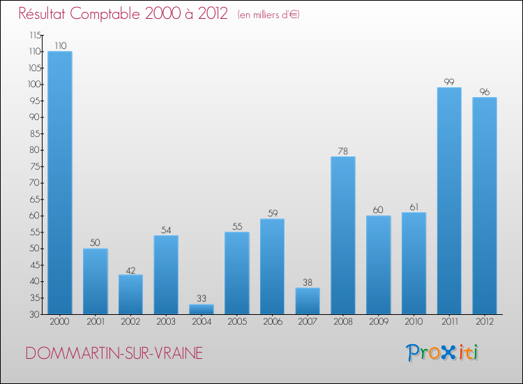 Le résultat comptable de la commune de Dommartin-sur-Vraine s'établissait ainsi à : + 96 000 € fin 2012.