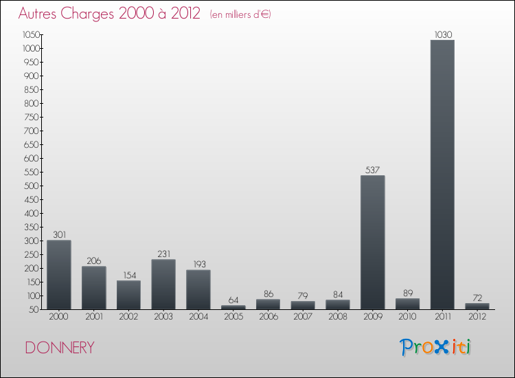 En 2012, les charges de fonctionnement de la commune de Donnery étaient de : 2 023 000 € décomposées comme suit :
