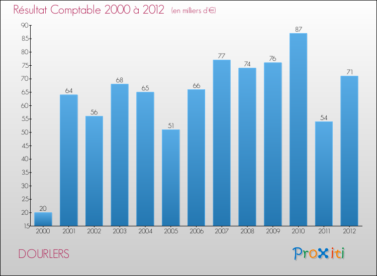 Le résultat comptable de la commune de Dourlers s'établissait ainsi à : + 71 000 € fin 2012.