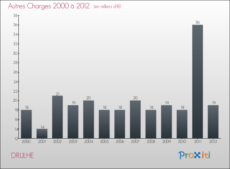 En 2012, les charges de fonctionnement de la commune de Drulhe étaient de : 229 000 € décomposées comme suit :
