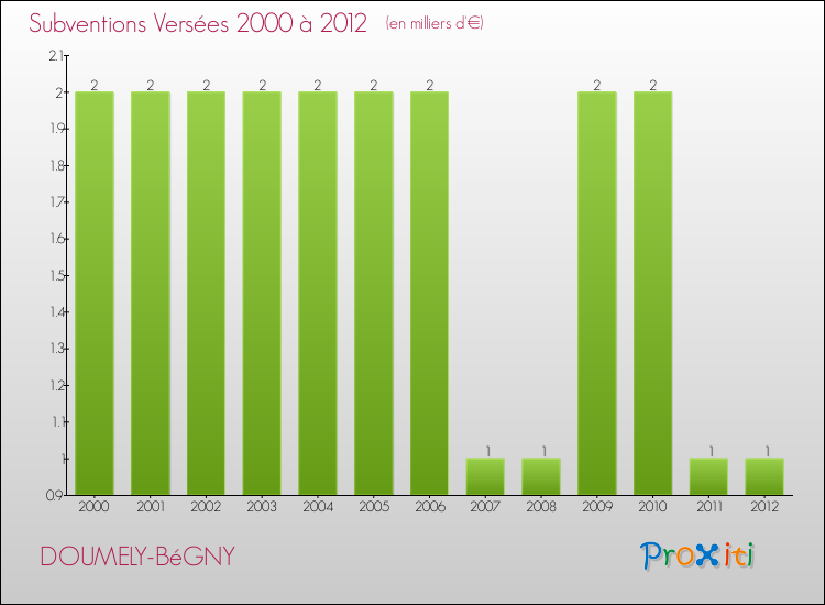 Le résultat comptable de la commune de Doumely-Bégny s'établissait ainsi à : + 5 000 € fin 2012.