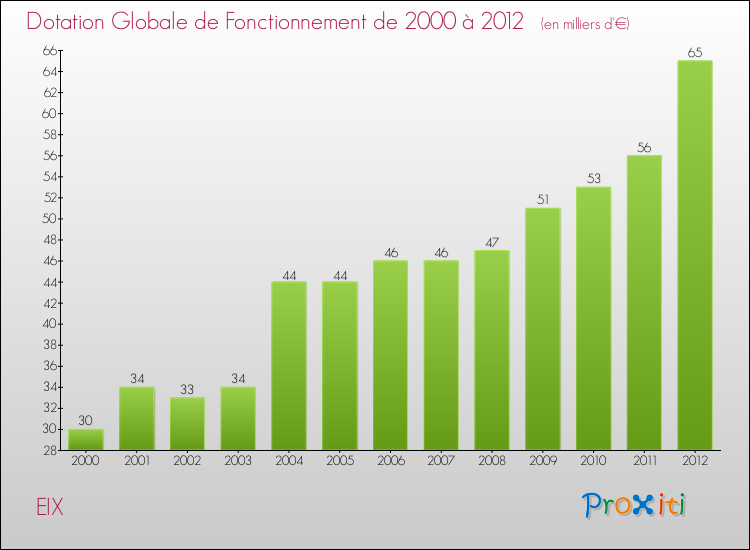 En 2012, le budget de fonctionnement de la commune de Eix se montait à : 116 000 € décomposé comme suit :