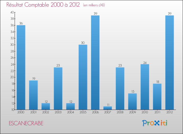 Le résultat comptable de la commune de Escanecrabe s'établissait ainsi à : + 39 000 € fin 2012.