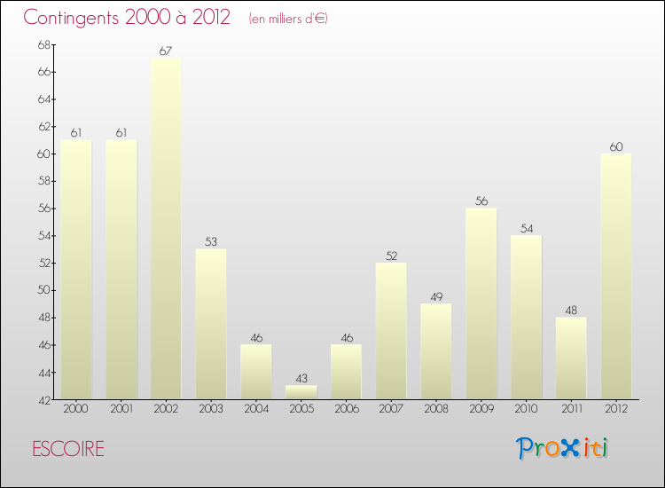 Le résultat comptable de la commune de Escoire s'établissait ainsi à : + 26 000 € fin 2012.