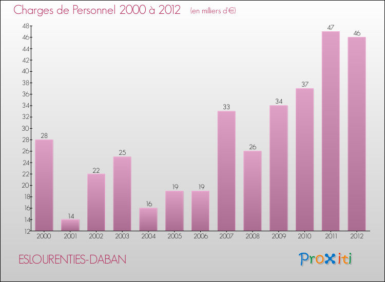 - Charges de Personnel (principalement pour payer les employés municipaux) : 46 000 €