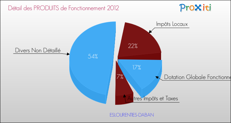 En 2012, le budget de fonctionnement de la commune de Eslourenties-Daban se montait à : 259 000 € décomposé comme suit :