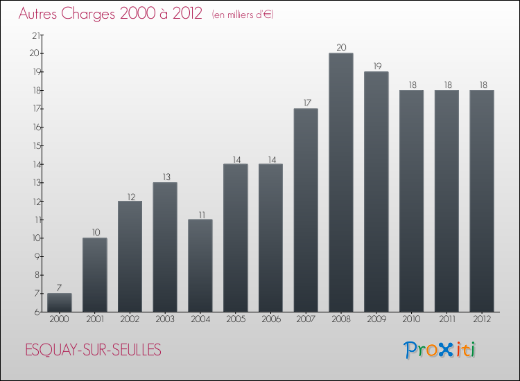 En 2012, les charges de fonctionnement de la commune de Esquay-sur-Seulles étaient de : 197 000 € décomposées comme suit :