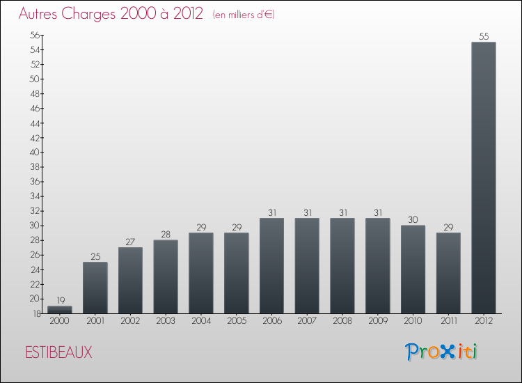 En 2012, les charges de fonctionnement de la commune de Estibeaux étaient de : 417 000 € décomposées comme suit :