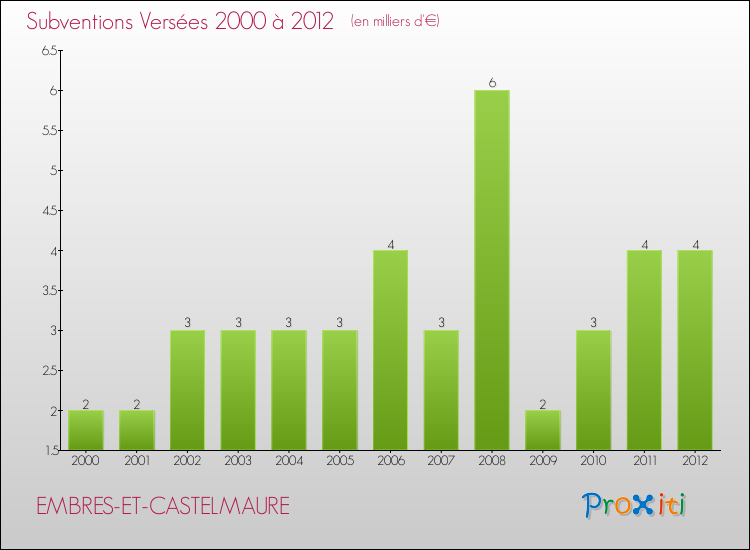 Le résultat comptable de la commune de Embres-et-Castelmaure s'établissait ainsi à : + 33 000 € fin 2012.