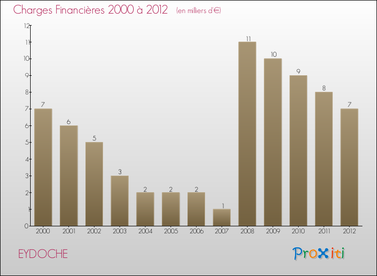 Evolution du résultat comptable pour EYDOCHE de 2000 à 2012