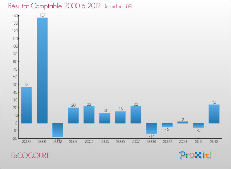 Evolution du résultat comptable pour FéCOCOURT de 2000 à 2012