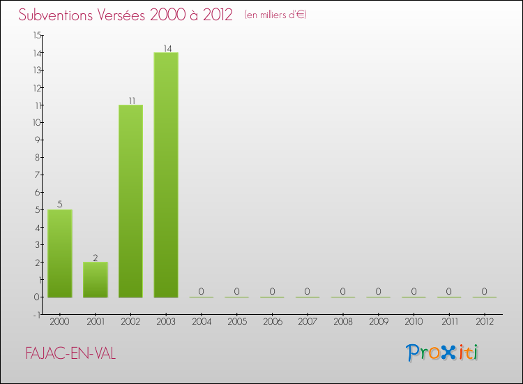 Le résultat comptable de la commune de Fajac-en-Val s'établissait ainsi à : + 14 000 € fin 2012.