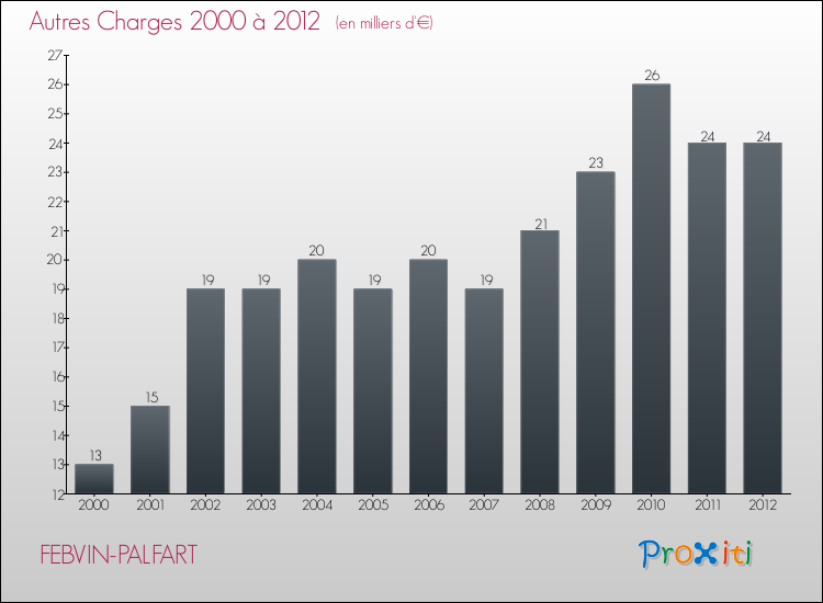 En 2012, les charges de fonctionnement de la commune de Febvin-Palfart étaient de : 203 000 € décomposées comme suit :