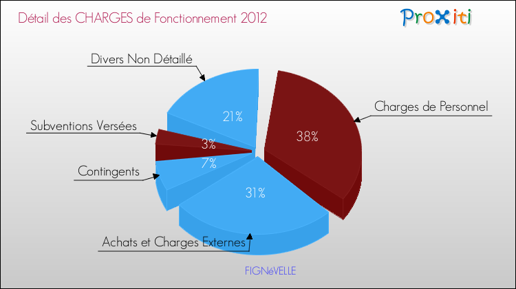 En 2012, les charges de fonctionnement de la commune de Fignévelle étaient de : 29 000 € décomposées comme suit :