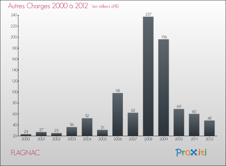 En 2012, les charges de fonctionnement de la commune de Flagnac étaient de : 466 000 € décomposées comme suit :
