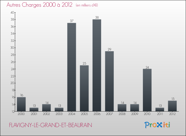 En 2012, les charges de fonctionnement de la commune de Flavigny-le-Grand-et-Beaurain étaient de : 181 000 € décomposées comme suit :