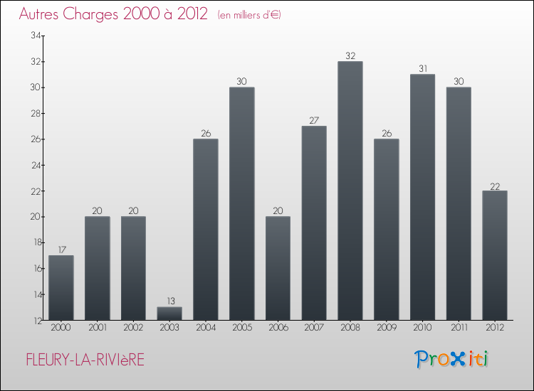En 2012, les charges de fonctionnement de la commune de Fleury-la-Rivière étaient de : 239 000 € décomposées comme suit :