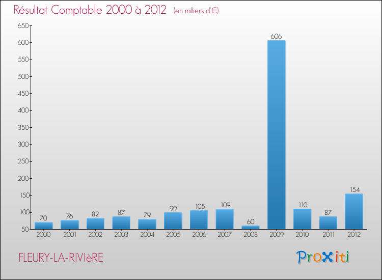 Le résultat comptable de la commune de Fleury-la-Rivière s'établissait ainsi à : + 154 000 € fin 2012.