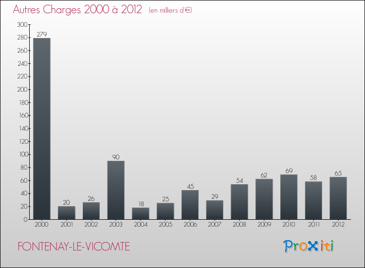 En 2012, les charges de fonctionnement de la commune de Fontenay-le-Vicomte étaient de : 815 000 € décomposées comme suit :