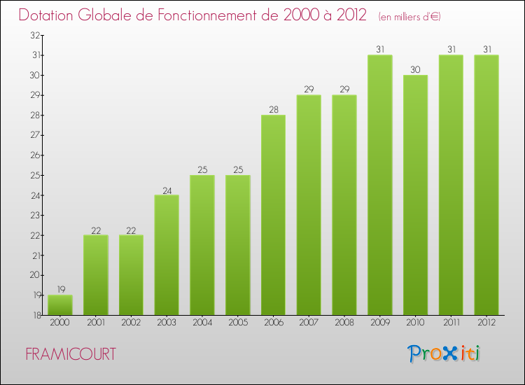 En 2012, le budget de fonctionnement de la commune de Framicourt se montait à : 70 000 € décomposé comme suit :