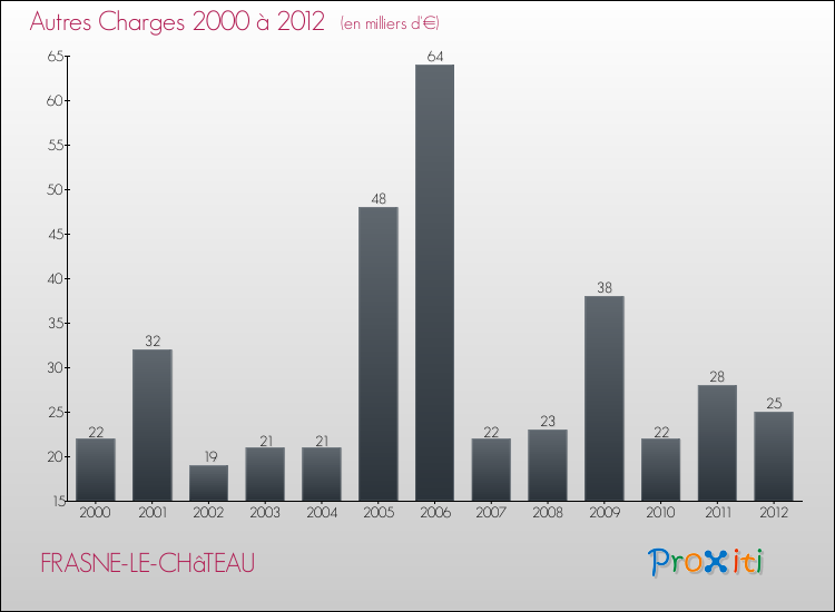 En 2012, les charges de fonctionnement de la commune de Frasne-le-Château étaient de : 173 000 € décomposées comme suit :