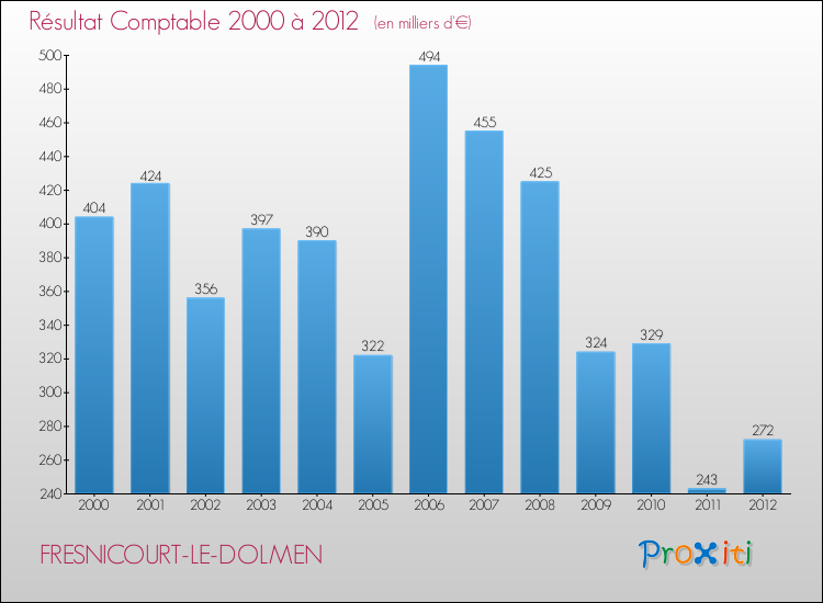Le résultat comptable de la commune de Fresnicourt-le-Dolmen s'établissait ainsi à : + 272 000 € fin 2012.