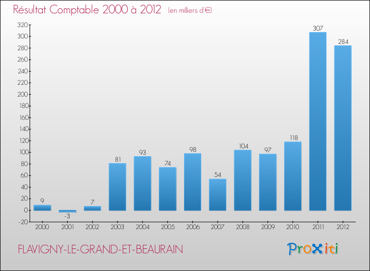 Le résultat comptable de la commune de Flavigny-le-Grand-et-Beaurain s'établissait ainsi à : + 284 000 € fin 2012.