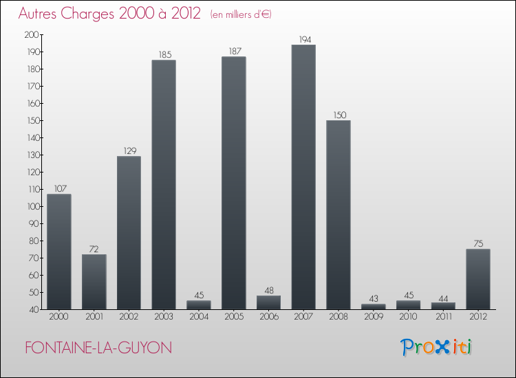 En 2012, les charges de fonctionnement de la commune de Fontaine-la-Guyon étaient de : 949 000 € décomposées comme suit :